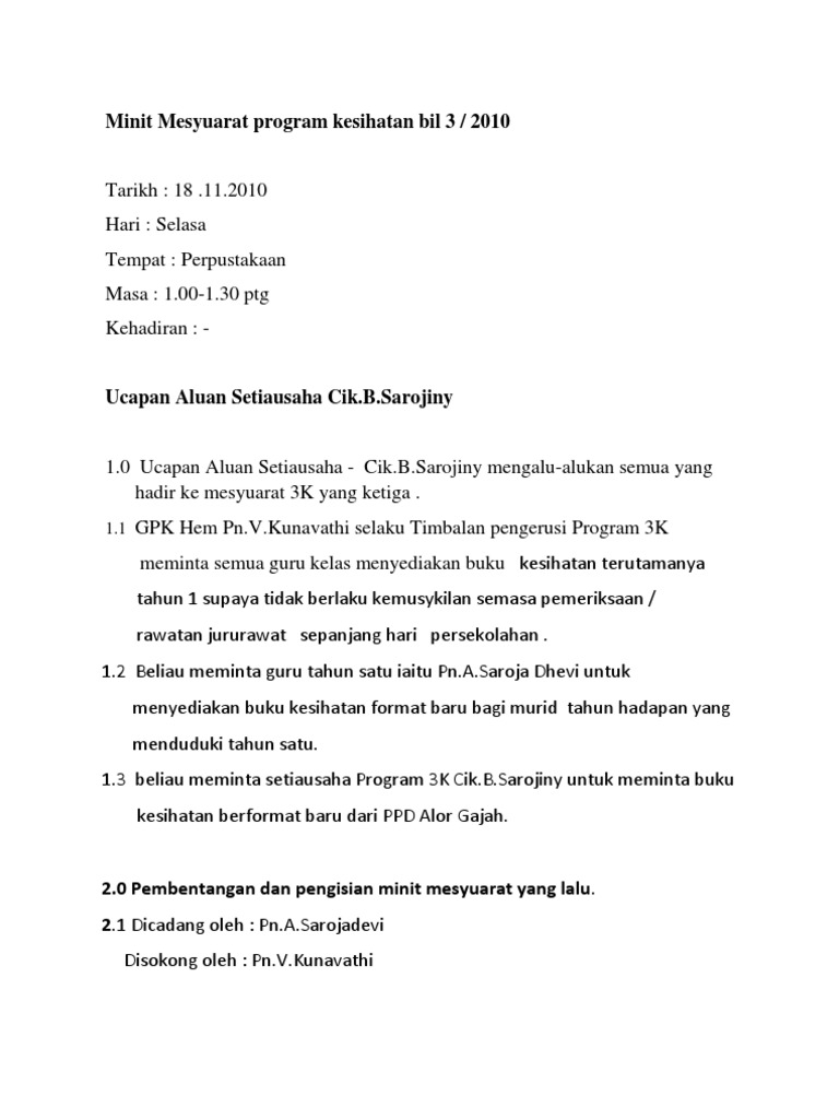 Contoh Mesyuarat Keselamatan Dan Kesihatanrekod. MINIT MESYUARAT SEKRETARIAT KEBAJIKAN DAN KESELAMATAN OPKIM 10 PENJURU DARUL TAZIM TENGGARA 2013 KALI PERTAMA PERSATUAN MAHASISWA ANAK JOHOR PERMAJ SESI 20132014 Tarikh. Diadakan di Bilik Mesyuarat Utama Ibu Pejabat JPS Sabah Tarikh 23hb.