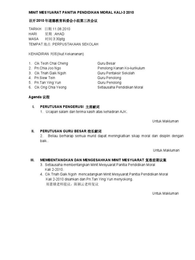 Minit Mesyuarat Pendidikan Moral Kali Ke3 Pdf
