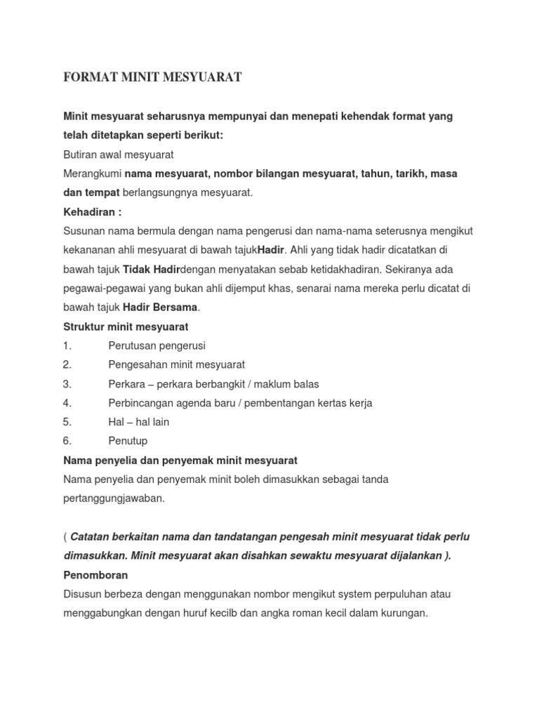 Format Penulisan Minit Mesyuarat Pdf