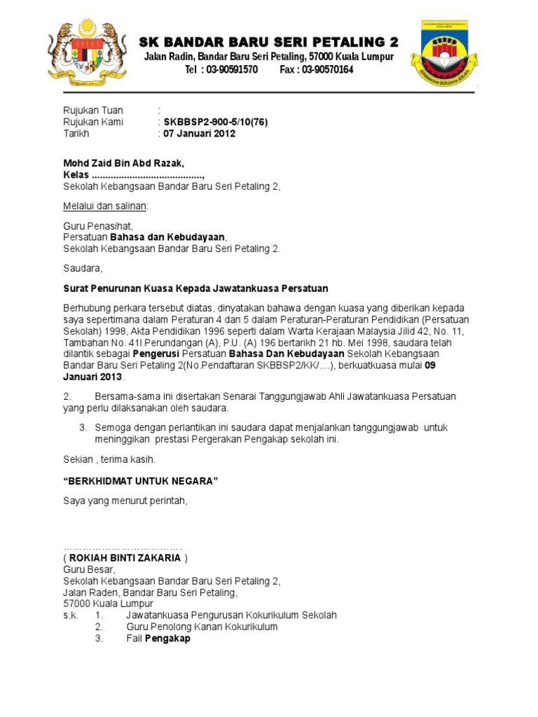 Contoh Surat Penurunan Kuasa Pengetua Pengakap Pdf