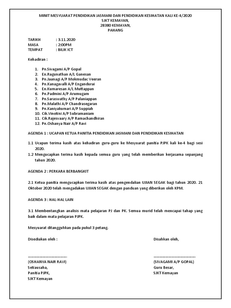Minit Mesyuarat Pendidikan Jasmani Dan Pendidikan Kesihatan Kali Ke Pdf