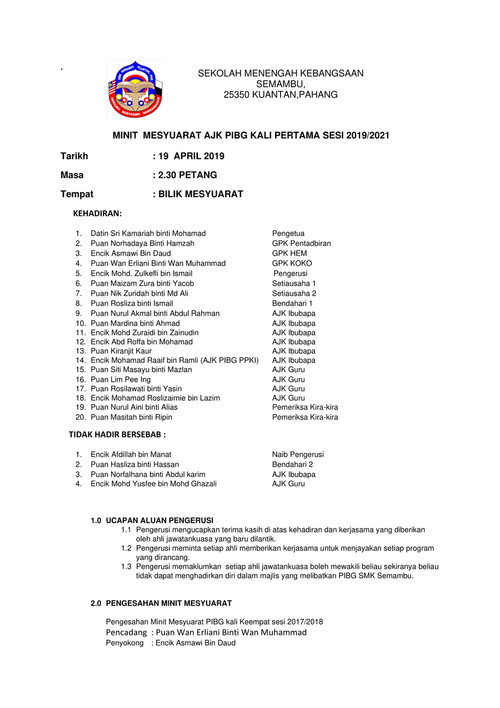 Muat turun halaman 1-13 di AnyFlip. Barisan guru kanan mata pelajaran guruguru AJK PIBG ibu bapa dan anak didik yang dikasihi sekalian. Shuhaidah Ishak Penyelaras PKPI 1 URUS SETIA MESYUARAT.