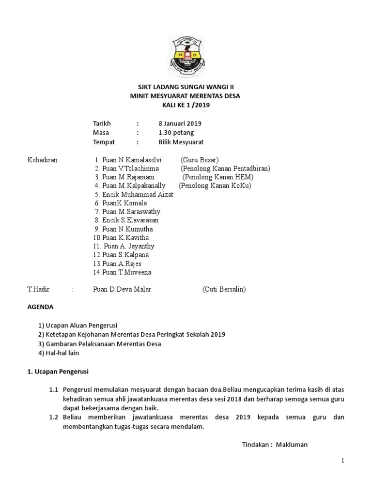 Minit Mesyuarat Merentas Desa 1 Pdf