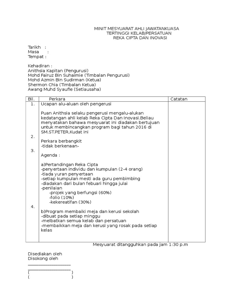 Contoh Minit Mesyuarat Reka Cipta Dan Inovasi Pdf